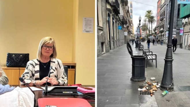 Inmaculada Medina, concejala de Carnaval y Aguas en el Ayuntamiento de Las Palmas de Gran Canaria, faltó el respeto este martes a los vecinos que se han manifestado en la calle Triana, escoba en mano, contra la suciedad del barrio. Las movilizaciones arrancaron el pasado jueves, a las 19.00 horas, en la Espiral del Viento de Chirino —entrada de la calle comercial por la parte más próxima al Parque San Telmo—.