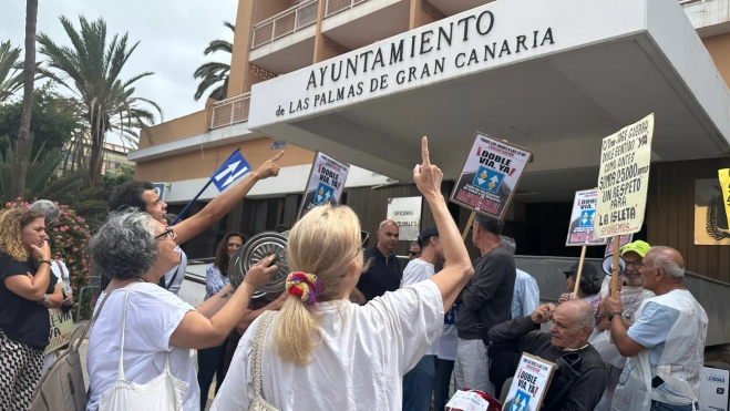 Félix Alonso, presidente de Foro por La Isleta, afirma que, aunque muchos no pudieron acudir por la edad o por razones laborales, han alcanzado las 8.000 firmas para apoyar la causa. “Ahora se convierte en un calvario ir al centro de salud y se ha vuelto más difícil porque empezaron las obras de Belén María”, sentencia con pesadumbre. Tuvo que cortar sus declaraciones porque empezaba uno de los momentos más esperados: la lectura del manifiesto. Más tarde vendrían momentos de tensión en los que tuvo que intervenir, incluso, la vigilante de seguridad del Ayuntamiento para calmar las aguas y evitar que entraran al interior del edificio —nada sin importancia, todo quedó en la anécdota—.