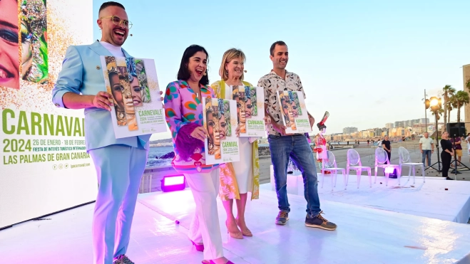 En un acto diseñado para los amantes del Carnaval, sus agentes y devotos, la alcaldesa de la ciudad, Carolina Darias, acompañada de la concejala Inmaculada Medina, descubrió el afiche que proyectará la imagen de la que ya es Fiesta de Interés Turístico Internacional.