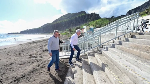 Por su parte, Roque explicó que la intervención ha supuesto “un replanteo completo de las rampas y escaleras”, incorporando pavimentos táctiles y barandillas a ambos lados, con el objetivo de cumplir estrictamente la normativa de accesibilidad. Según indicó, las obras se han ejecutado en zonas de urbanización consolidada, evitando afecciones al entorno natural de la playa.