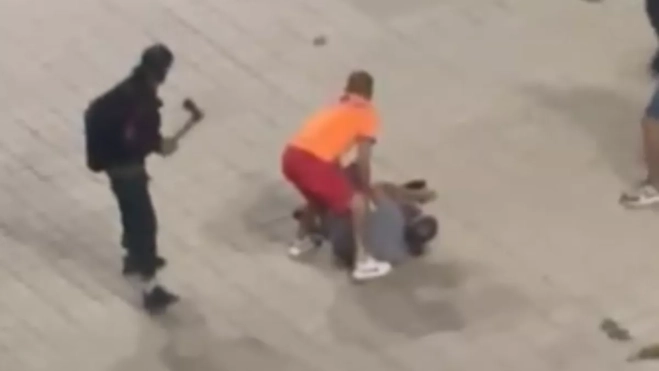 Las impactantes imágenes del ataque, a las que ha tenido acceso Atlántico Hoy, muestran cómo el agredido aparece primero blandiendo un hacha y golpeando a uno de sus futuros agresores. Sin embargo, los tres hombres lo reducen rápidamente, le arrebatan el arma blanca y comienzan a golpearlo violentamente con el propio hacha y un palo.