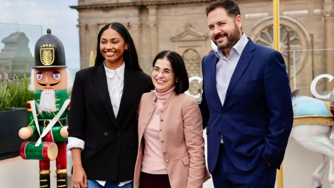 La alcaldesa de Las Palmas de Gran Canaria, Carolina Darias, y el concejal de Cultura, Josué Íñiguez, acompañaron este miércoles a la cantante NIA en la presentación del concierto de Navidad que ofrecerá tras el encendido navideño la noche de este jueves 4 de diciembre en la plaza de Santa Ana, un espectáculo que comenzará a las 20:00 horas.