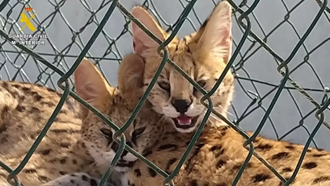 La Guardia Civil ha investigado a tres personas por la tenencia y cría ilegal de estos animales en una finca particular del municipio de Las Palmas de Gran Canaria. Durante la intervención, los agentes incautaron cinco ejemplares de serval africano, su nombre común, —una hembra gestante, un macho adulto y tres crías de unos cuatro meses— que se encontraban en un recinto cerrado de unos 50 metros cuadrados con doble puerta de acceso.