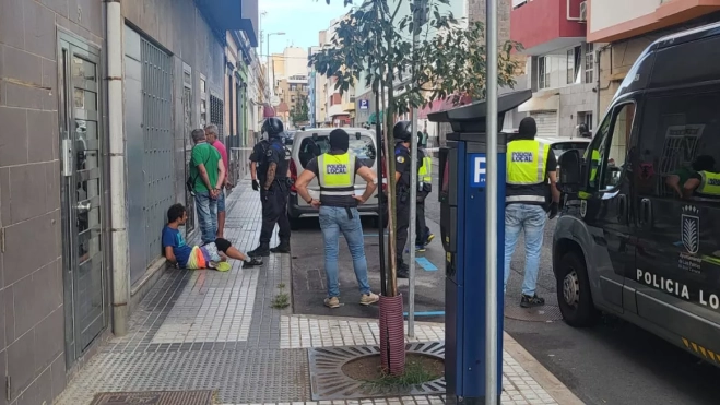 Desde primera hora de la mañana, unidades de la Policía Nacional y del GOIA de la Policía Local de Las Palmas de Gran Canaria están actuando en la calle Molino de Viento en la capital de Gran Canaria.