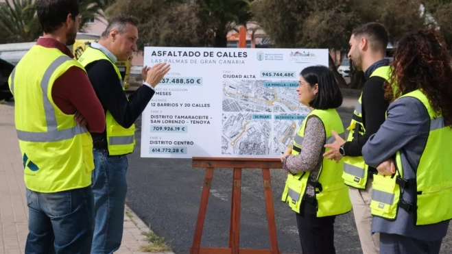Acompañada por el concejal de Vías y Obras, Carlos Díaz, y la concejala del Distrito Ciudad Alta, Betsaida González, Darias ha detallado que este plan permitirá la mejora de 25 de calles en tres distritos de la ciudad, con un nuevo asfaltado y mejoras en las aceras, informa el Consistorio en un comunicado.