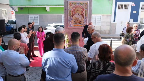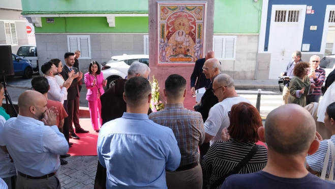 La alcaldesa de Las Palmas de Gran Canaria, Carolina Darias, ha descubierto hoy junto a vecinos y vecinas de La Isleta un azulejo conmemorativo por la coronación canónica de la Virgen del Carmen, acto que tendrá lugar la tarde de este sábado en la Base Naval de la ciudad.