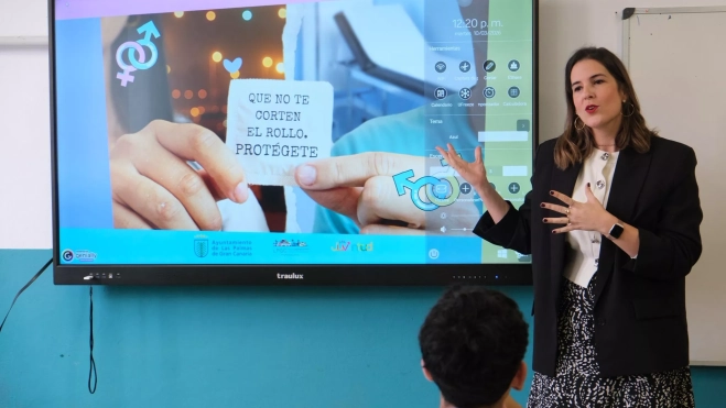 La concejala de Juventud, Carla Campoamor, presentó la campaña en el IES Pérez Galdós ante alumnado del centro y alertó sobre una tendencia preocupante: el uso del preservativo entre jóvenes ha caído 18 puntos desde 2002, según datos del Ministerio de Sanidad.