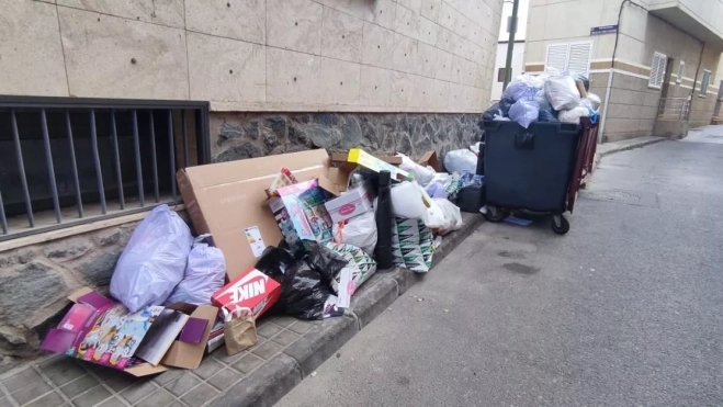 Tras la fiesta nocturna y diurna por la llegada de los Reyes Magos de Oriente, las calles principales de El Risco de San Nicolás, en el límite con el barrio de Triana y la avenida Primero de Mayo, amanecieron con los contenedores desbordados de basura, sin rastro del plan de limpieza con el que el Ayuntamiento de Las Palmas de Gran Canaria adecentó la parte baja de la ciudad en tiempo récord.