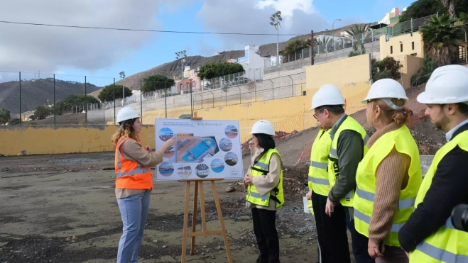 La alcaldesa de la ciudad, Carolina Darias, junto a la concejala de Deportes y presidenta del Instituto Municipal para la Promoción de la Actividad Física y el Deporte (IMD), Carla Campoamor; el concejal de Desarrollo Urbano, Mauricio Roque; la concejala del Distrito Vegueta-Cono Sur-Tafira, Nina Santana; y el gerente del IMD, Eloy García, iniciaron este viernes, simbólicamente, la construcción de este espacio con el acto de colocación de la primera piedra.