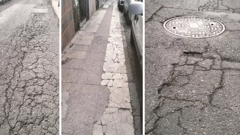 Cuentan que el problema se desencadenó hace unos seis años, momento en el que un vecino se lo notificó al Ayuntamiento. Al parecer, el hombre recibió respuesta por parte del Consistorio comprometiéndose a arreglar la vía, “pero lo único que han hecho es venir con un cubo de asfalto para echárselo a los parches y ya está”.