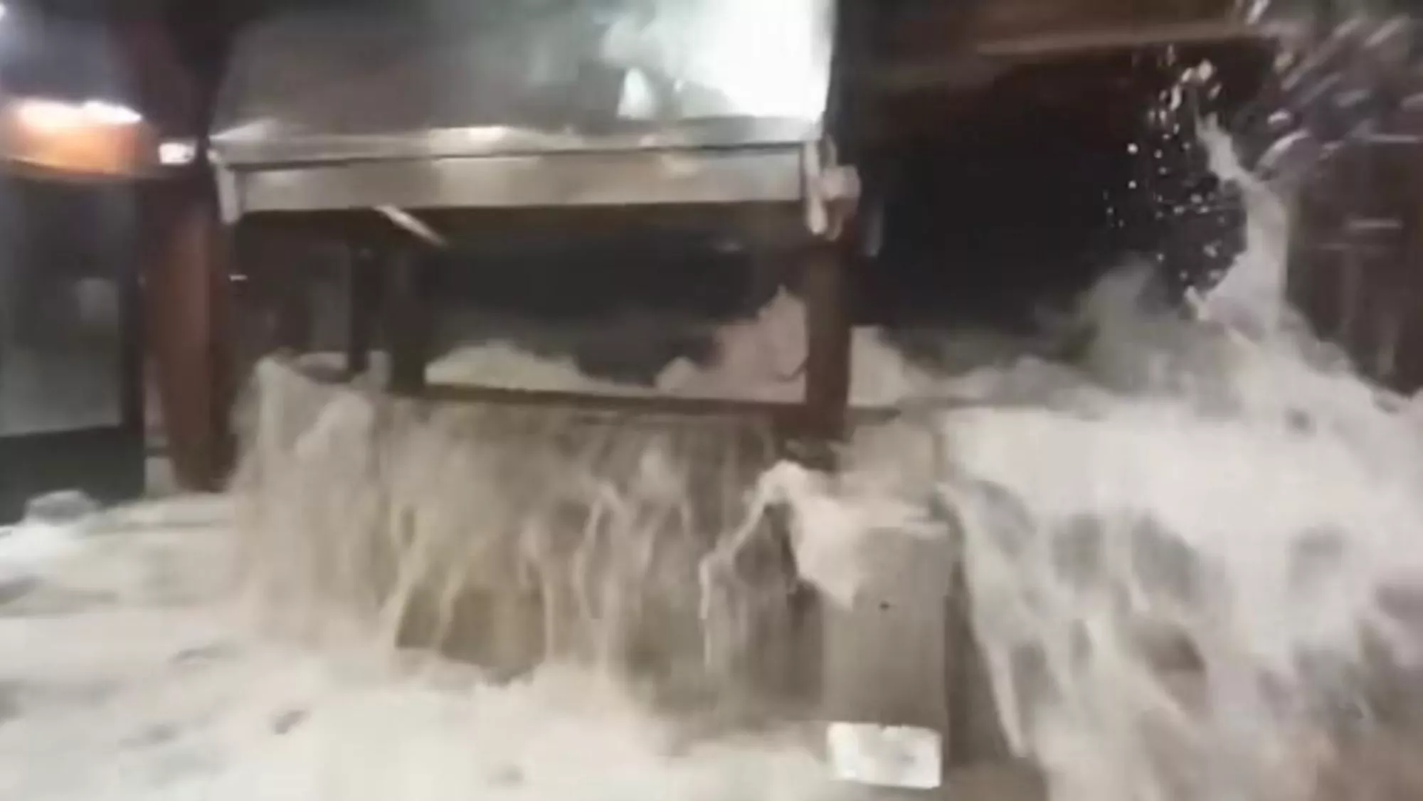 El conocido restaurante La Marinera, ubicado en la zona de la Puntilla en la playa de Las Canteras, ha sufrido las consecuencias del oleaje causado por la pleamar de los últimos días. El mar golpeó las ventanas del local inundando el recinto. En un vídeo publicado en las redes de Acfi Press se puede observar cómo sucedieron los hechos durante la noche.