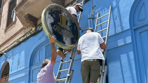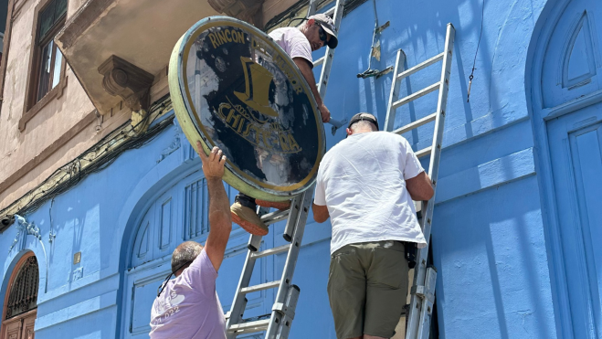 Medina explica a Atlántico Hoy que la familia de Manolo Vieira se puso en contacto con ellos para rescatar el rótulo. “Ha sido una operación rápida y lo hemos conseguido”, exclama. Indica que está bastante deteriorado después de 42 años desde que lo colocaron. “Pero se puede restaurar fácilmente”, aclara.