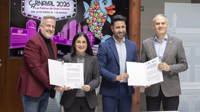El Carnaval de Las Palmas de Gran Canaria ha asegurado su proyección exterior en un año clave para la fiesta. El Ayuntamiento capitalino ha formalizado este lunes la renovación del convenio de colaboración con Radiotelevisión Canaria (RTVC) y Radiotelevisión Española (RTVE). Este acuerdo permitirá que la celebración, que cumple su 50 aniversario y está inspirada en la alegoría de 'Las Vegas', se retransmita en directo tanto en el archipiélago como a nivel nacional e internacional.