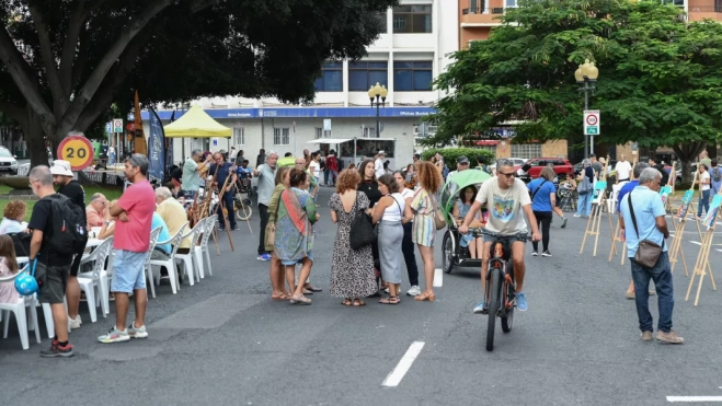 El concejal de Movilidad de Las Palmas de Gran Canaria, José Eduardo Ramírez, participó esta tarde en la exposición del taller “Ruta Pictórica: Arte en Movimiento”, instalada en las inmediaciones del Obelisco como parte de las celebraciones del Día Sin Coches, que ponen el broche final a la Semana Europea de la Movilidad 2025.