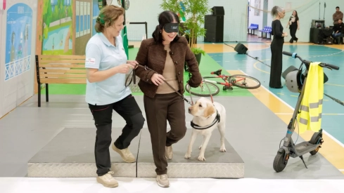 Durante la demostración, Darias experimentó en primera persona la labor de estos animales al realizar un recorrido por el circuito con un antifaz, guiada por uno de los perros, comprobando así la confianza y autonomía que ofrecen a las personas con discapacidad visual.