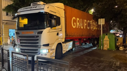 Decenas de conductores y transeúntes fueron testigos de la complicada maniobra, que obligó a detener el tráfico mientras el chófer intentaba maniobrar el tráiler para poder liberarlo del estrechamiento urbano. El incidente puso de manifiesto las dificultades del tráfico pesado en calles históricas del centro, donde la estrechez de los carriles y la presencia de mobiliario urbano convierten cualquier error de cálculo en un problema de grandes dimensiones.