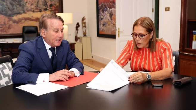 La presidenta del Parlamento de Canarias, Astrid Pérez, mantuvo hoy miércoles una reunión con el presidente del Consejo Consultivo de Canarias, Carlos de Millán Hernández-Egea, en la sede de la Cámara autonómica. Este encuentro marca el inicio de la ronda de reuniones con los órganos adscritos al Parlamento.