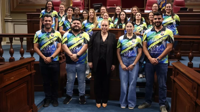 La presidenta del Parlamento de Canarias, Astrid Pérez, recibió este lunes, en la sede de la Cámara canaria, a las jugadoras del Club Balomano Zonzamas, equipo que ha ascendido a la máxima categoría del balonmano en España, la Liga Guerreras Iberdrola.