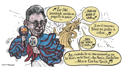 Con todo, dicen que lo que le pierde es la música y cantar. Si hay un micrófono a mano o un karaoke cerca, todos saben que el cabeza de cartel de cualquier show es Tarife y al resto le toca asumir el papel de telonero. Fan de bandas británicas como Coldplay, Queen o los Beatles, la salsa es su debilidad y Flor pálida, de Marc Anthony, su canción favorita. "Le fui brindando cariño un poquito de amor (para que nunca se vaya); Y en el invierno llenó mi jardín de color (para que nunca se vaya); Ay, cuando la vi, me enamoré y me la llevé, me la llevé". Esa estrofa vale para explicar un amor como el suyo por Santa Cruz de Tenerife.
