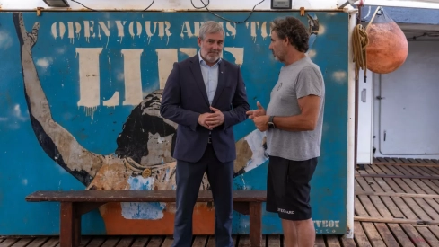 “Cuando uno tiene un puesto de responsabilidad, y desgraciadamente lo tiene, debería ser prudente con sus declaraciones", dijo Clavijo, durante su visita al puerto, donde se encuentra el buque humanitario. Y ha añadido: "Le hace un flaco favor a la democracia, salvo que a él le moleste la democracia, cosa que ya algunos empezamos a pensar”.
