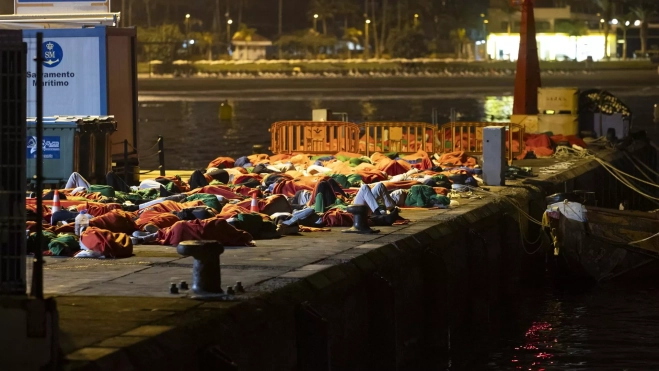 Unas 200 personas que llegaron en Tenerife en dos cayucos han pasado la noche en el puerto de Los Cristianos ante la falta de espacio en los centros de primera acogida y filiación, tras un pico de llegadas sin precedentes desde 2020 (unas 1.200 personas en un día) que obligó a derivar a Tenerife a casi 500 personas que habían llegado a El Hierro.