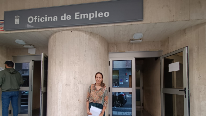 Ana Caballero se dispone a entrar en la Oficina de Empleo del barrio de Arenales a inscribirse en el paro. Ella pide que el próximo gobierno municipal en el Ayuntamiento de Las Palmas de Gran Canaria “luche por la igualdad en el trabajo y la conciliación laboral”.