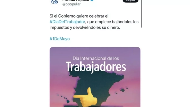 Lo que empezó como una reivindicación política en redes sociales terminó siendo un motivo de indignación en Canarias. Con motivo del Día del Trabajador, el Partido Popular compartió en su cuenta oficial un mensaje donde criticaba la gestión del Gobierno central, sugiriendo que la mejor forma de celebrar el 1 de mayo era bajar impuestos y devolver dinero a los trabajadores.