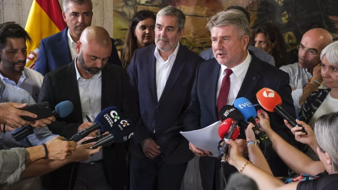 El vicepresidente de Canarias, Manuel Domínguez, ha coincidido en la necesidad de "reforzar la presencia de Frontex en las costas del Archipiélago para mejorar la seguridad y prevenir tragedias en el mar, como la reciente llegada de una embarcación con tripulantes indocumentados al puerto de Órzola (Lanzarote), que también provocó un vertido".