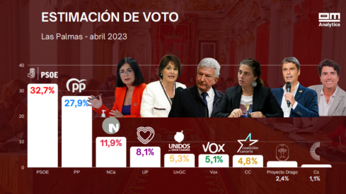El panel electoral ha sido elaborado con nuevas respuestas obtenidas entre el 6 de enero y el 4 de abril –ambos incluidos–, con una muestra de 1.283 respuestas –876 previas y 407 nuevas– entre población con derecho a voto de Las Palmas de Gran Canaria. El margen de error es de tres puntos y se ha realizado mediante entrevistas online con cuestionario inteligente y estructurado.