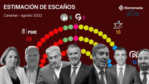 La muestra, compuesta con 2.107 respuestas obtenidas entre el 13 de julio y el 13 de agosto, eleva hasta 25 el número de diputados regionales que obtendría el PSOE si los comicios se celebraran ahora. Esa cifra, la misma que la sumada en mayo de 2019, mantendría a la formación liderada por Torres como el partido que más respaldo popular recibe en el Archipiélago. Respecto a la encuesta realizada el mes pasado, el PSOE incluso aumentaría el porcentaje de apoyo —pasaría del 31,8% de julio al 32,1% del último estudio—.
