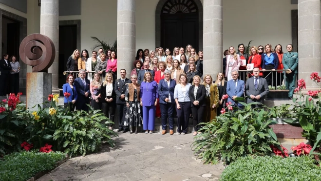 La presidenta del Parlamento canario, Astrid Pérez, inauguró este jueves la II Jornada Parlamento e Igualdad. Mujeres que rompen barreras, para conmemorar el Día de las Mujeres que se celebra el 8 de marzo.