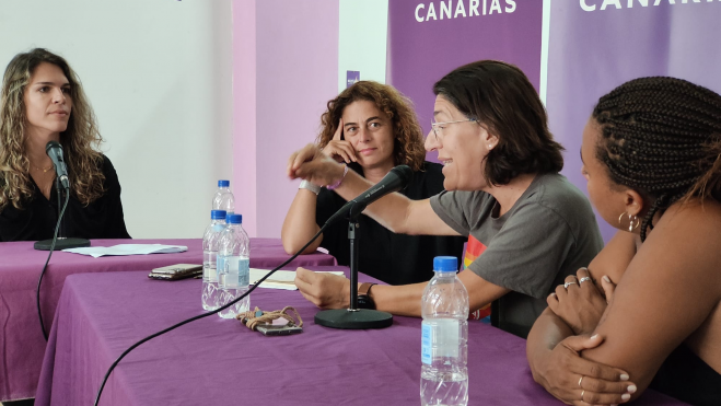 En plena Plaza del Pilar, se sube la verja y descubren las puertas de la sede de Podemos en la capital grancanaria. Abiertas de par en par al barrio, la gente con una simple mirada puede ver todo lo que se cuece dentro. La candidata Gemma Martínez, junto a “su ejército de Pancho Villa”, como se nombran desde el cariño entre risas, continúan con la campaña para el esperado 28M.