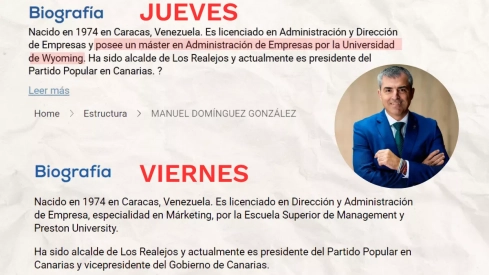 Hasta ayer, jueves 24 de mayo, el vicepresidente de Canarias, Manuel Domínguez, poseía un máster en Administración de Empresas por la Universidad de Wyoming (Estados Unidos), tal y como afirmaba la página web del Partido Popular en su perfil.