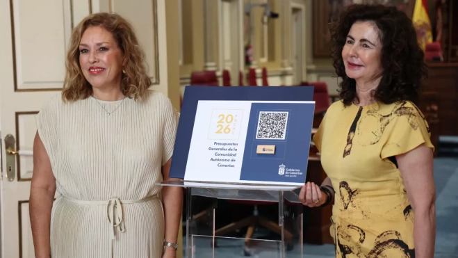 La presidenta del Parlamento de Canarias, Astrid Pérez, recibió este jueves el proyecto de ley de Presupuestos Generales de la Comunidad Autónoma de Canarias para 2026 por parte de la consejera de Hacienda del Gobierno de Canarias, Matilde Asián.