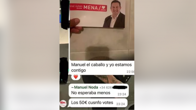 Manuel Noda, del Partido Socialista en Arona, fue acusado la tarde del jueves de comprar votos. La denuncia llegó desde Partido Popular, Coalición Canaria y Más por Arona, que presentaron como prueba un pantallazo de un grupo privado de WhatsApp en el que Noda le dice a otra persona: "Los 50 euros, cuando votes".