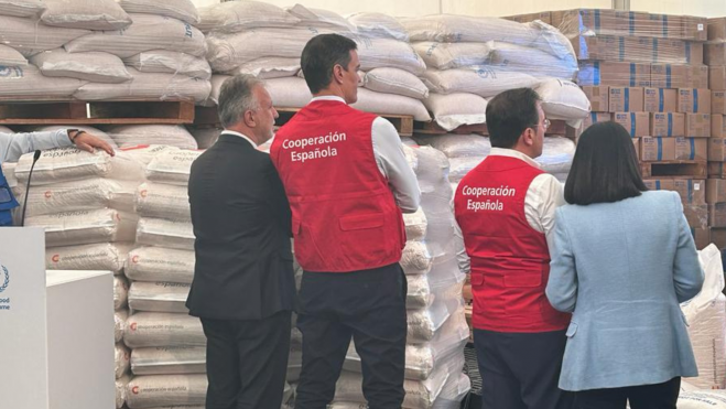 El presidente del Gobierno de España, Pedro Sánchez y Ángel Víctor Torres, presidente de Canarias, se han reencontrado en la capital de la isla para reconocer la labor de la base logística del Programa Mundial de Alimentos de la ONU. En su comparecencia, Sánchez se centró en reconocer la nueva partida asignada para países vulnerables y para mandar sus condolencias a los afectados en el ataque producido recientemente en Algeciras, donde un joven asesinó al sacristán de una iglesia e hirió a otras cuatro personas.