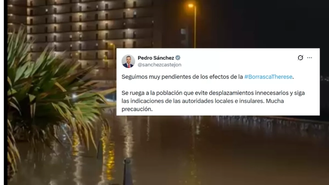 El presidente del Gobierno de España, Pedro Sánchez, ha asegurado que están pendientes de los efectos de la borrasca Therese y ha pedido “mucha precaución” a la población ante la situación de alerta máxima que vive la isla de Tenerife, tras registrar numerosas incidencias, entre las que hay inundaciones y desalojos de edicios.