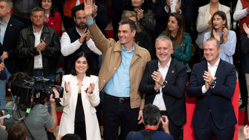 Y es que el aforo que quedaba por completar era nulo, los asientos estaban todos ocupados e incluso habilitaron una nueva zona para que las personas pudieran disfrutar del acto de pie. Había cierto bullicio pero nada comparable con lo que vendría después a la llegada de los protagonistas de la tarde. Pedro Sánchez, Carolina Darias, Ángel Víctor Torres y Augusto Hidalgo, caminaban juntos avanzando por un pasillo estrecho y ante un público que ovacionaba y aplaudía efusivo, como cuando las palmas de las manos comienzan a picar y el color de la piel se vuelve rojizo.