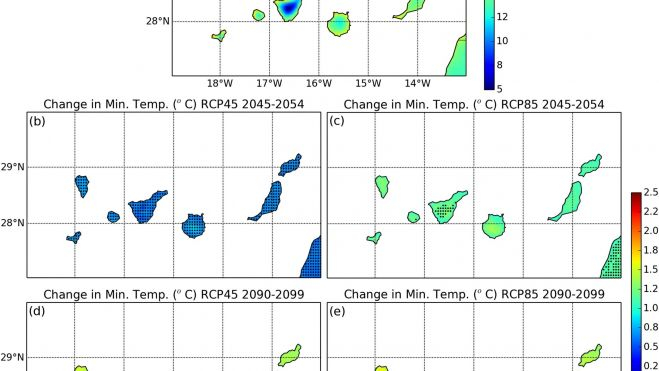 Entre otras conclusiones, las proyecciones extraídas de este proyecto determinan que las temperaturas mínimas diarias podrían llegar a subir, en promedio, entre 1 y 3 grados a finales de siglo en el panorama más desfavorable. En estas circunstancias, también sería previsible un aumento en el número de noches tropicales, es decir, las que la temperatura mínima no baja de los 20 grados. En el peor de los escenarios, dicho incremento será de 45 días de promedio para todo el archipiélago, encontrándose los mayores valores en las islas orientales y en las zonas costeras.
