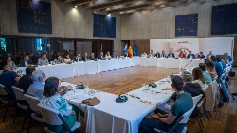 Asimismo, los 88 ayuntamientos canarios estaban representados por la presidenta de la Federación Canaria de Municipios, FECAM, Mari Brito, los vicepresidentes, Ana Dorta, Armando Raúl Dorta y Rosa María Chinea, y el vocal del Comité Ejecutivo de la FECAM, Francisco Atta. En cuanto a los grupos parlamentarios asistieron a la reunión el portavoz del Grupo Nacionalista Canario, José Miguel Barragán, del Partido Popular, Luz Reverón, del Partido Socialista, Sebastián Franquis, de Nueva Canarias, Luis Campos, de la Agrupación Socialista Gomera, Jesús Ramos, del Grupo Mixto, Raúl Acosta, y del Grupo Vox, Paula Jover, único grupo que declinó suscribir el acuerdo.