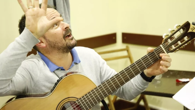 No, los ensayos son serios, la verdad. A veces la gente piensa, pues eso, cuando típico te dice la gente, tienen que estar todo el día de vacilón, bromas,.., imposible, porque es que si no, no funcionaría. Esto, no, en los ensayos hay seriedad. Hombre, no te digo que no haya un chiste entremedio o al finalizar y demás, pero es que si no, ya hoy en día no te vale con la media. Si tienes que trabajar, porque todos los grupos nos funcionan. Entonces si tú no eres serio a la hora de trabajar, como digo yo, hay que ensayar para después disfrutar. Porque si no, ¿qué vas a cantar? Vas a hacer el ridículo porque nadie te va, no te vas a saber la letra, no te vas a saber los arreglos. Entonces, si no hay seriedad en el ensayo, eso no funciona. Además, los ensayos nuestros duran una hora y cuarto, por ahí aproximadamente, una hora y media. No duran más.
