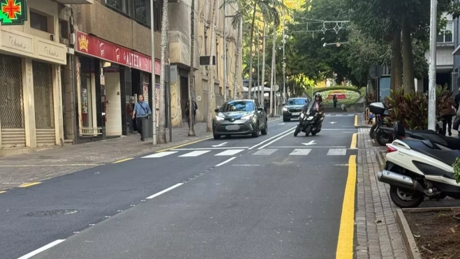 La calle de El Pilar, en Santa Cruz de Tenerife, vuelve a contar con dos carriles de circulación tras el desmantelamiento del carril bici que se había instalado en la vía. Hasta este momento, estos dos carriles ya pintados llegan a la altura de la iglesia de Nuestra Señora del Pilar.