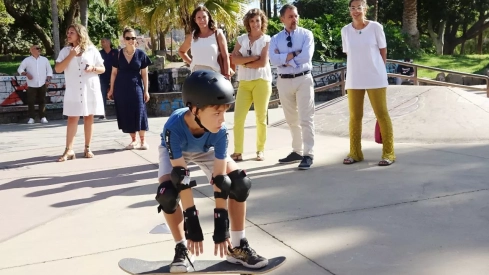 El vídeo de Bermúdez domando el sancheski se grabó durante una visitó al cursillo de iniciación al skate, que forma parte del programa de actividades de verano del Servicio de Deportes de Santa Cruz y que se ha llevado a cabo durante todo el mes de julio en el Parque La Granja de la capital. Junto al alcalde, también estuvieron la concejala de Deportes, Alicia Cebrián, y las responsables del distrito Salud-La Salle, Zaida González, y de Juventud, Charín González.