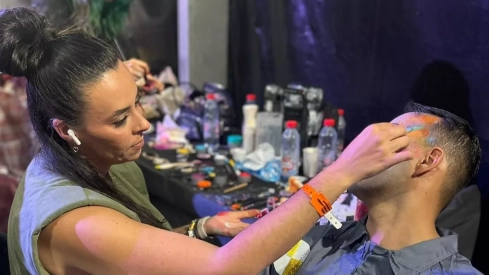 Yo recibo los bocetos de disfraz. Este año, por ejemplo, el de Mamelucos lo vi en junio, si no me equivoco. Y entre junio y septiembre voy viendo los bocetos y me tomo mi tiempo para hacer los diseños, hacer pruebas. Me las hago a mí, se las mando a la directiva, miramos si gusta, si no gusta, si quieren cambiar cosas... Y luego en la hora del concurso, me vuelvo loca. Se me cae el pelo y todo. La verdad es que tengo un grupo fijo conmigo de maquilladores profesionales. Y aparte, Instituto de las Indias, uno de La Laguna, otro de Añaza, me ayudan con las niñas de práctica. También de Erasmus, más bien unas chicas de Erasmus. O sea, que tengo bastante ayuda y súper agradecida, claro.