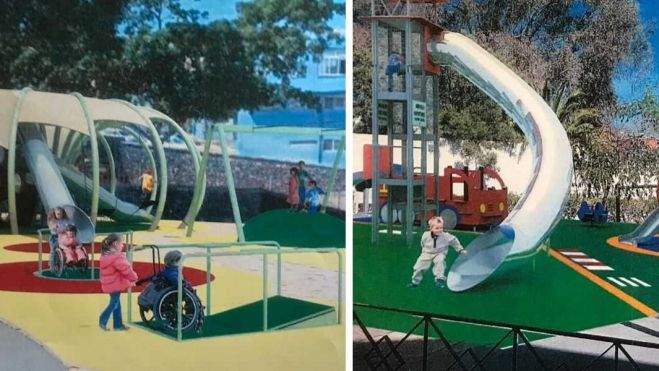 La alcaldesa destacó que se ha elaborado un estudio y escuchado a la población infantil para dotar a todo el municipio de nuevas instalaciones donde se recojan “los elementos que más les gustan a los niños y las niñas, como tirolinas, camas elásticas, diferentes alturas, torres, pasadizos, estructuras gigantes, giratorias, toboganes en tubo, en espiral y redes para trepar”.