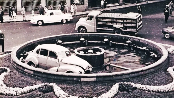 Entonces, como en la mayoría de las apuestas absurdas, todo ocurre cuando el pasajero picó al conductor. “A que no eres capaz de meter el coche, de una vez, dentro de la fuente”.