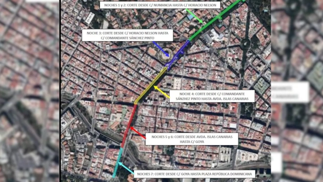 El martes 7 y el miércoles 8 de noviembre se trabajará en el tramo comprendido entre el cruce con la avenida Islas Canarias y la calle Goya, por lo que será necesario cortar el tráfico en la Rambla de Santa Cruz, en los dos carriles de salida de la ciudad, también entre las 22:00 y las 6:00 horas, a la altura del cruce con la avenida Islas Canarias. Además, se cortará el acceso a la avenida de La Asunción, en sentido salida, desde la calle Ramón y Cajal.