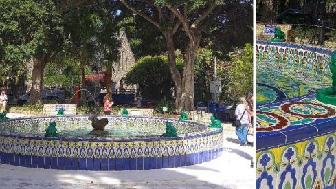 • La incorporación en el fondo de la fuente de unos 1.500 azulejos, los que se han tenido que encajar en el sentido de las agujas del reloj. Estos no solo se han colocado en la citada fuente, sino en la base del vaso central de esta y en las conocidas figuras de ranas que la rodean.