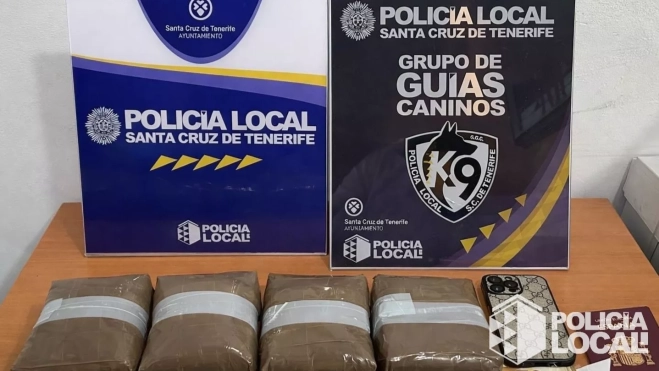 La Unidad Canina de la Policía Local de Santa Cruz de Tenerife interceptó en la tarde noche de este martes a un hombre de 41 años, identificado como J.F.G.G., que transportaba 2,2 kilogramos de hachís en una mochila mientras caminaba por el centro de la capital tinerfeña.