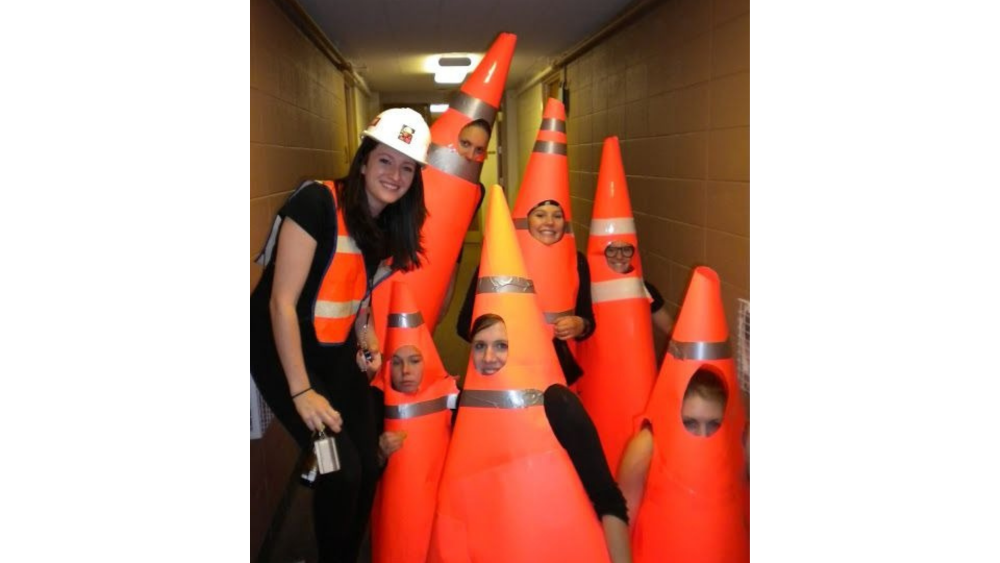 Para disfraces sencillos en grupo, lo mejor es vestirse de conos de señalización vial. Son un disfraz fácil de hacer, pues sólo requiere cartulinas o cartones grandes y naranjas y unas tiras de cinta americana o cinta de carrocero para hacer los reflectantes del cono.